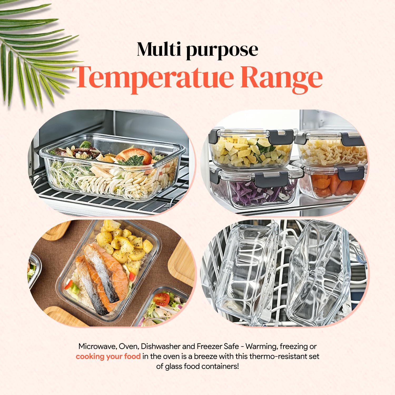 Freezer, Oven, Microwave & Dishwasher Safe: Our glass containers are designed to be safely used in the freezer, oven, microwave, and dishwasher. You can freeze leftovers or prepped meals, quickly heat up your food in the oven/microwave and clean up effortlessly in the dishwasher.